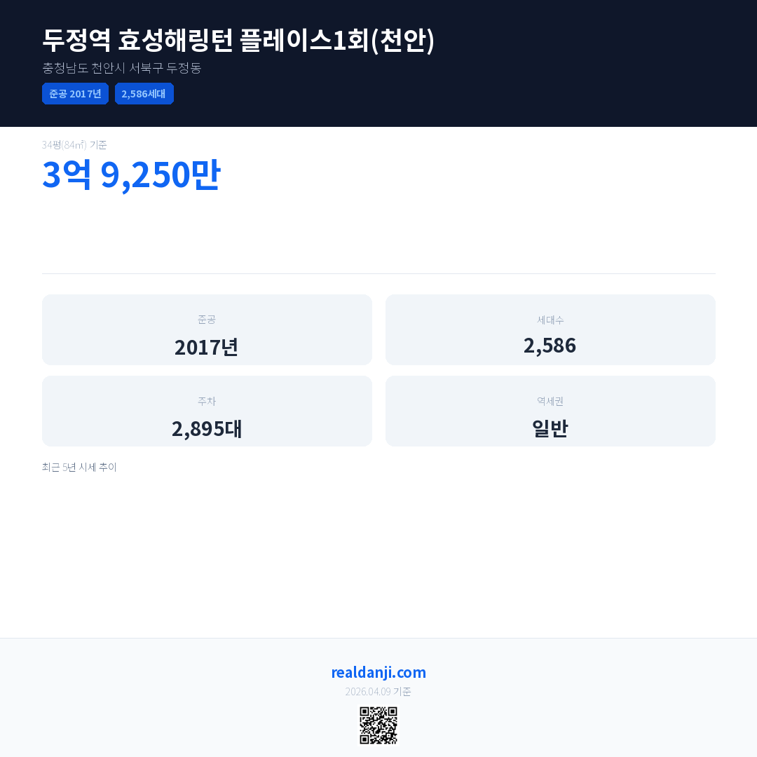 두정역 효성해링턴 플레이스1회(천안)은(는) 2017년에 준공되었으며, 현재 9년차입니다. 총 2,586세대 규모입니다.