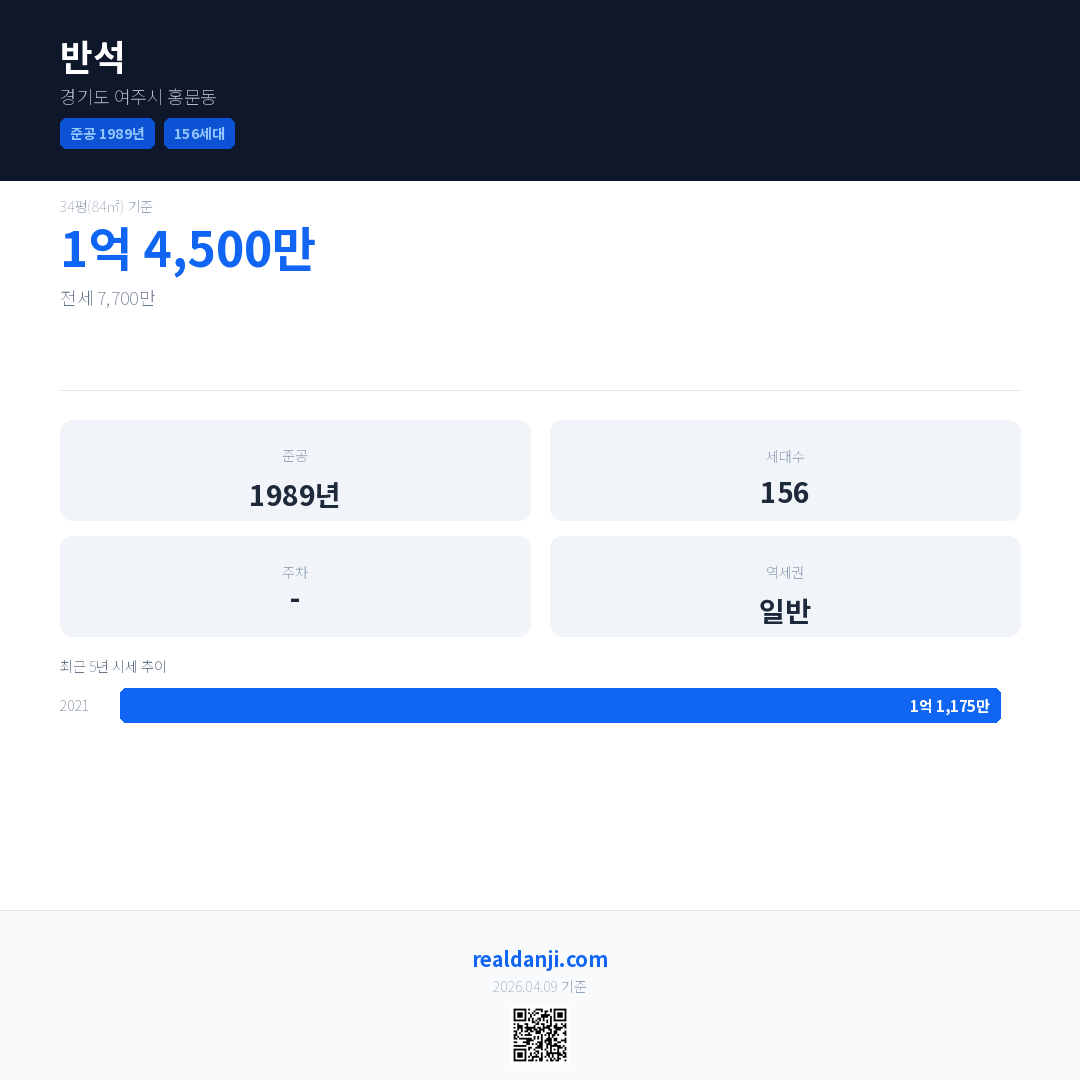 반석 최근 거래가는 1억 4,500만입니다. (2021-09)