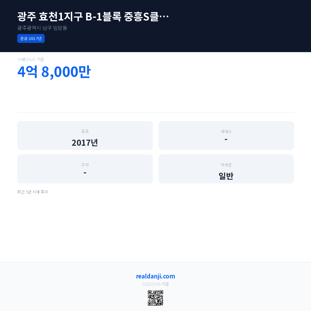 광주 효천1지구 B-1블록 중흥S클래스은(는) 2017년에 준공되었으며, 현재 9년차입니다.