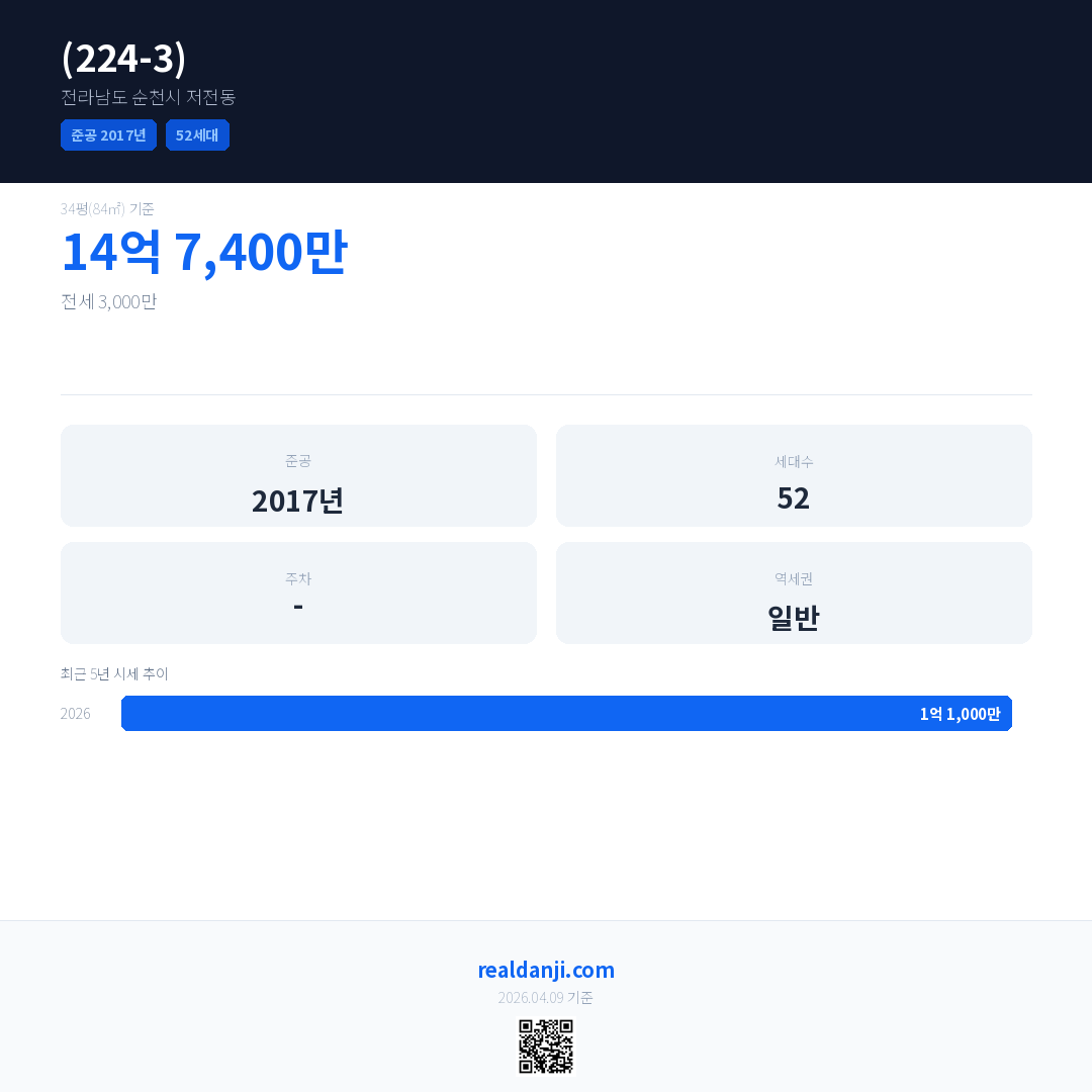 (224-3)은(는) 2017년에 준공되었으며, 현재 9년차입니다. 총 52세대 규모입니다.
