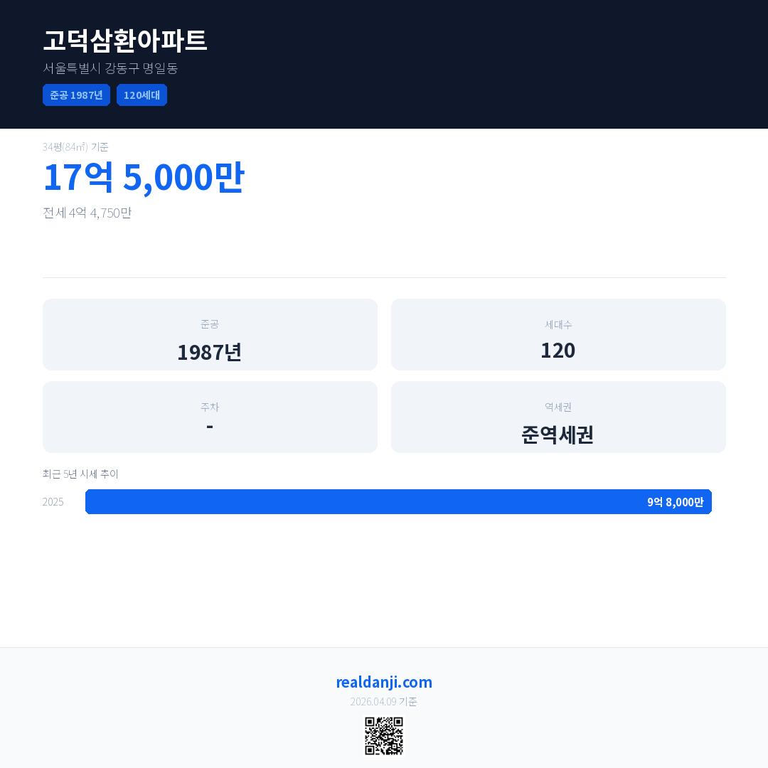 고덕삼환아파트 최근 거래가는 17억 5,000만입니다. (2026-02)