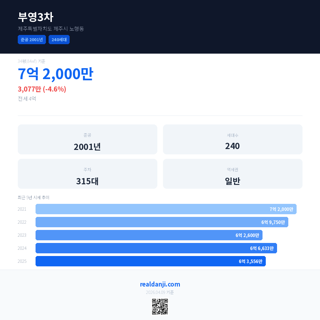 부영3차은(는) 2001년에 준공되었으며, 현재 25년차입니다. 총 240세대 규모입니다.