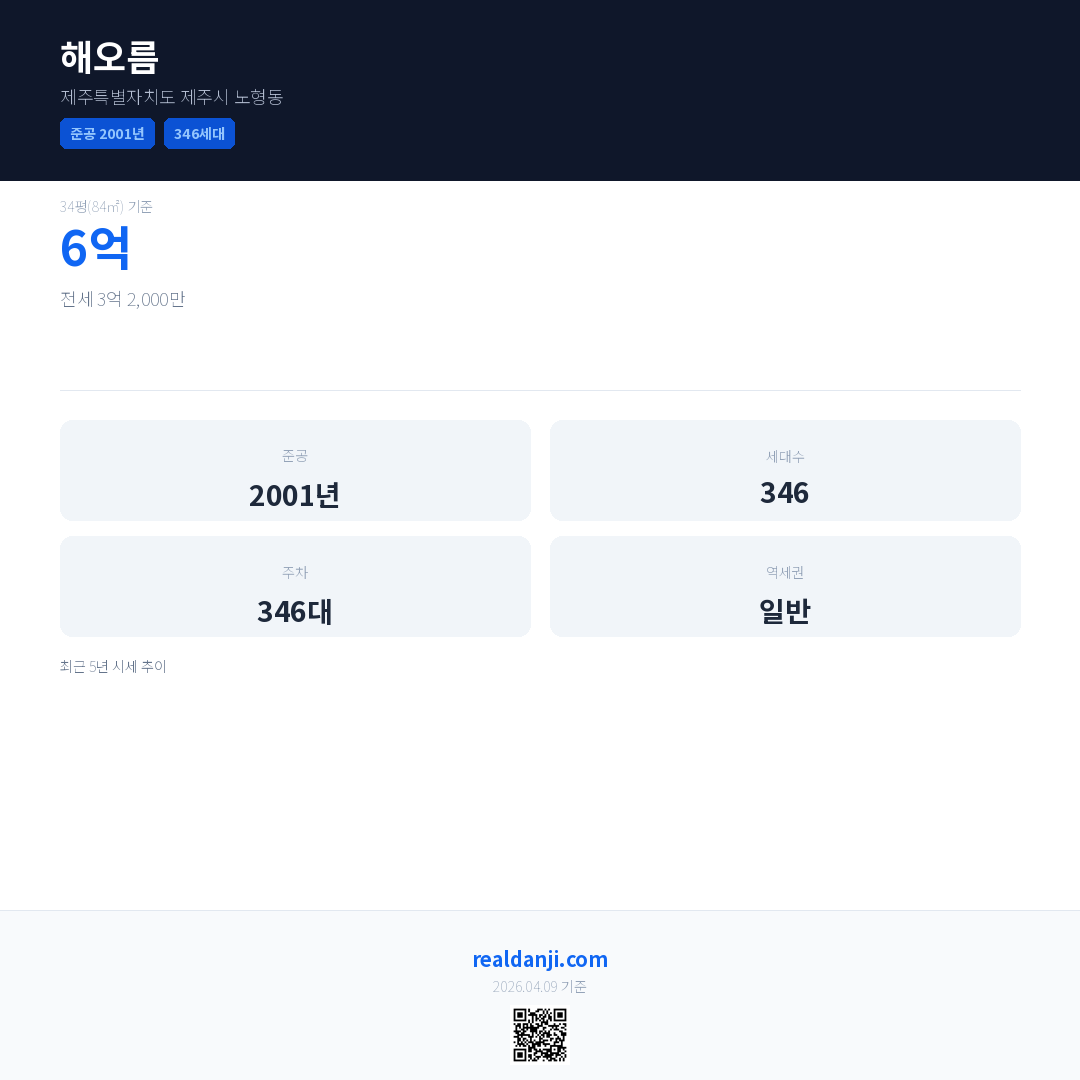 해오름 최근 거래가는 5억 3,000만입니다. (2026-03)