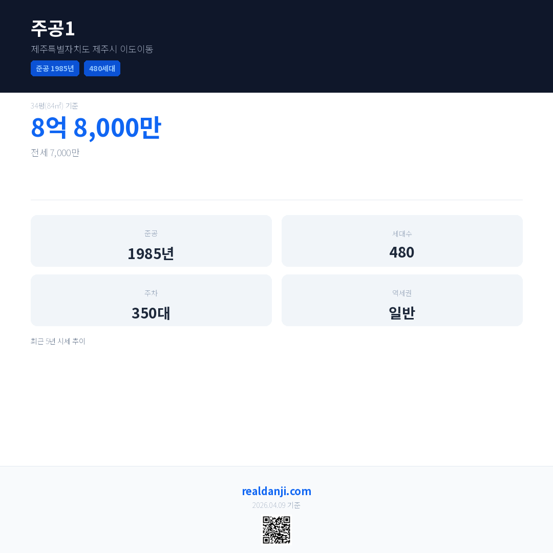 주공1은(는) 1985년에 준공되었으며, 현재 41년차입니다. 총 480세대 규모입니다.