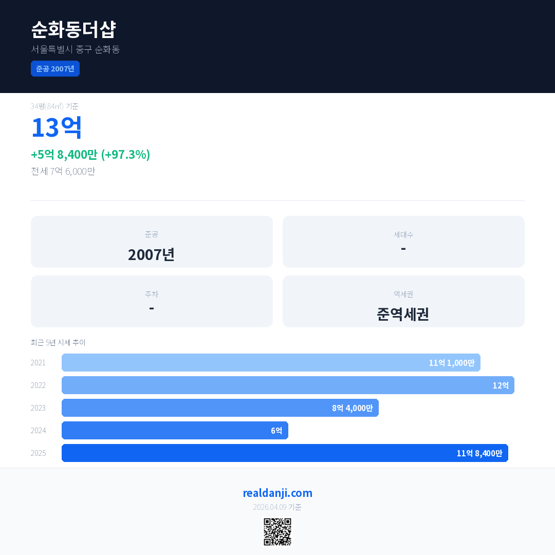 순화동더샵 최근 거래가는 13억입니다. (2026-03)