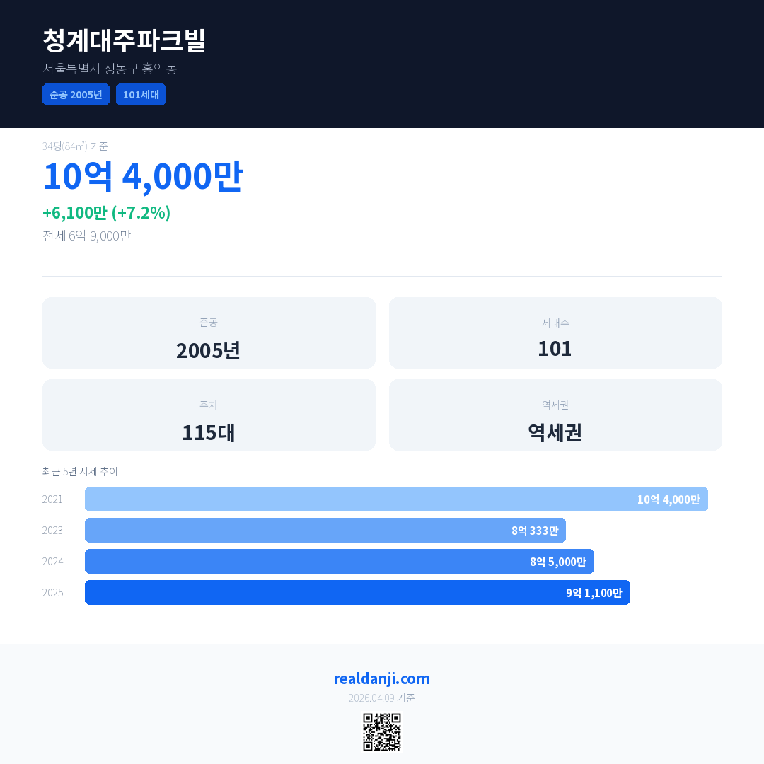 청계대주파크빌 최근 거래가는 10억 4,000만입니다. (2025-10)