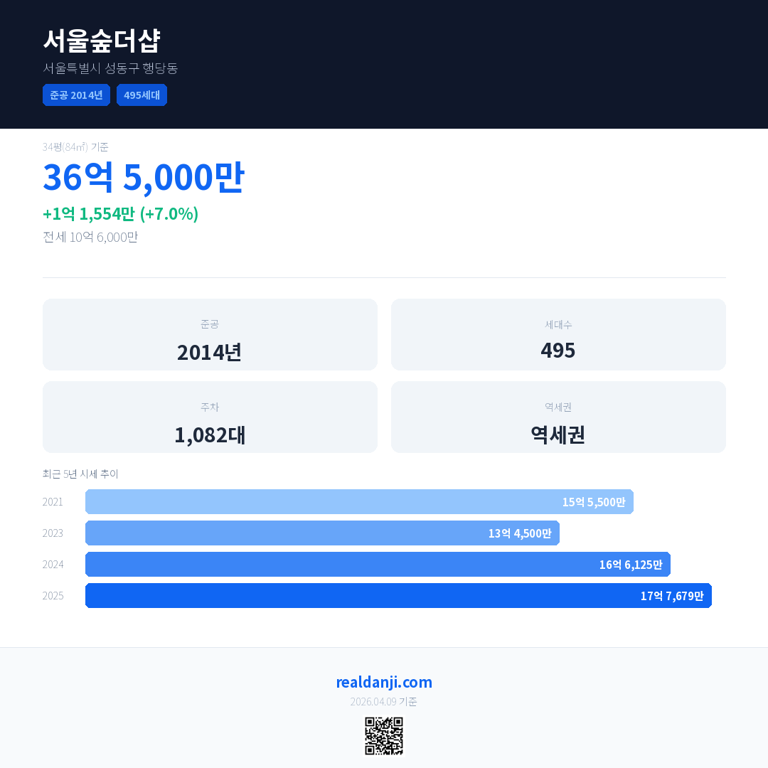 서울숲더샵 최근 거래가는 36억 5,000만입니다. (2026-02)