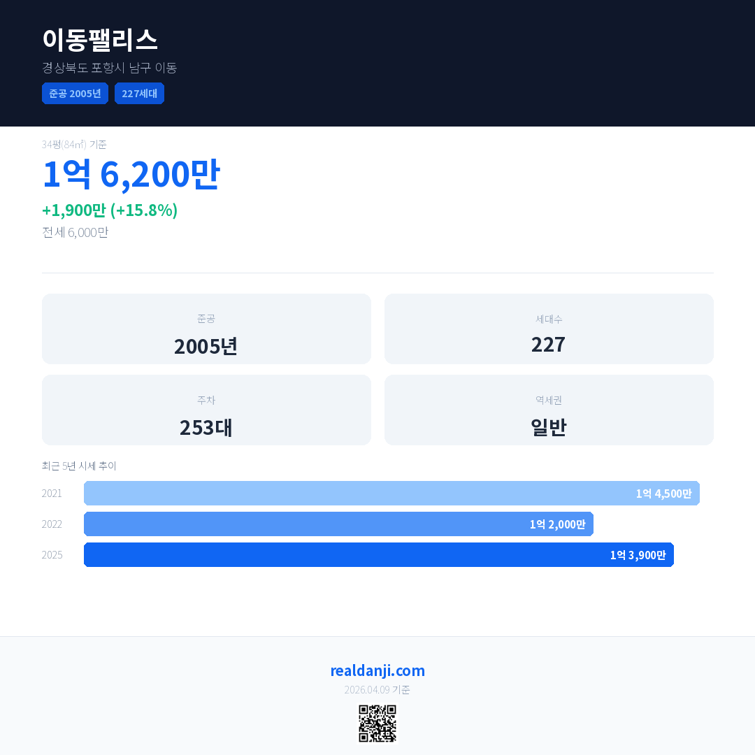 이동팰리스 최근 거래가는 1억 6,200만입니다. (2025-09)