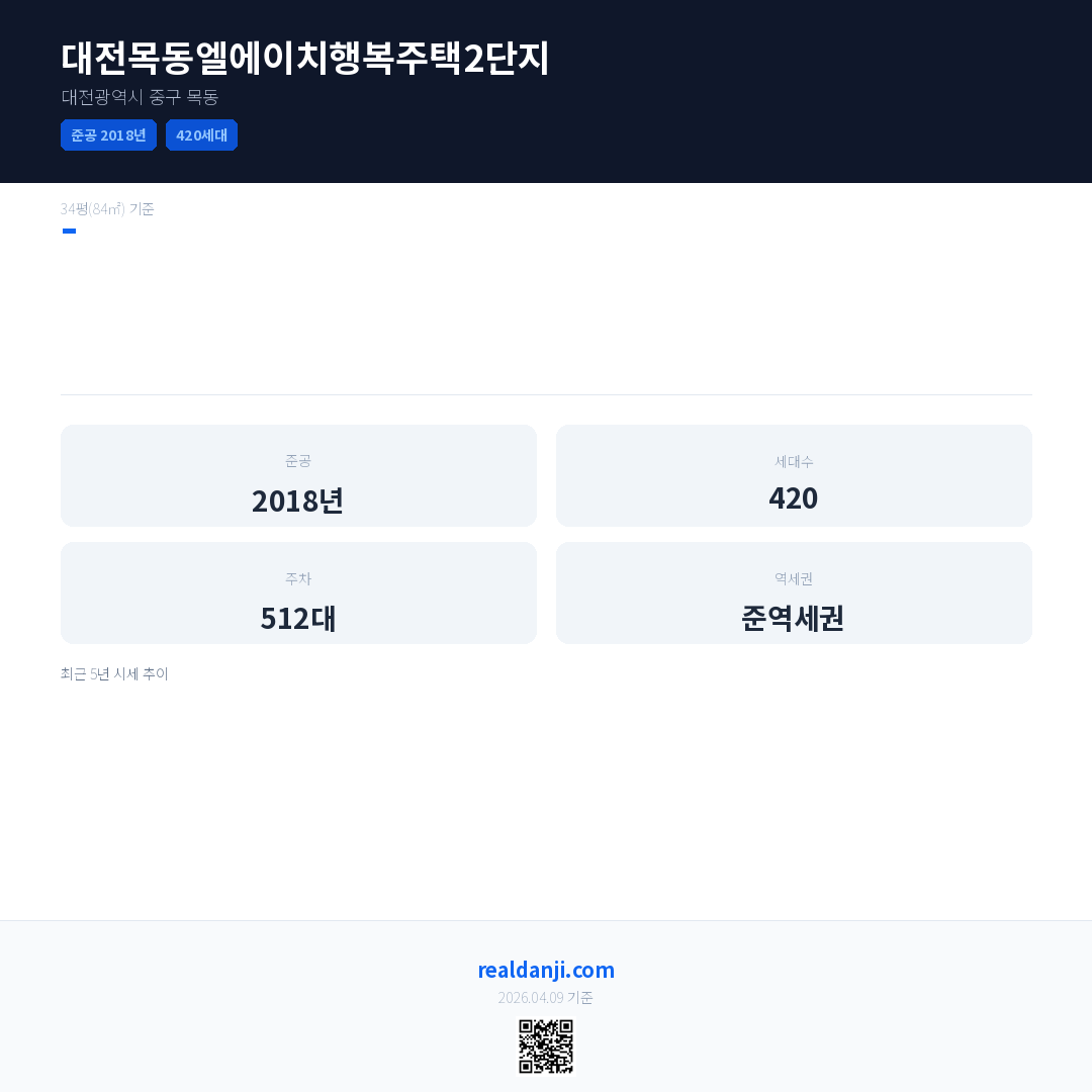 대전목동엘에이치행복주택2단지은(는) 2018년에 준공되었으며, 현재 8년차입니다. 총 420세대 규모입니다.