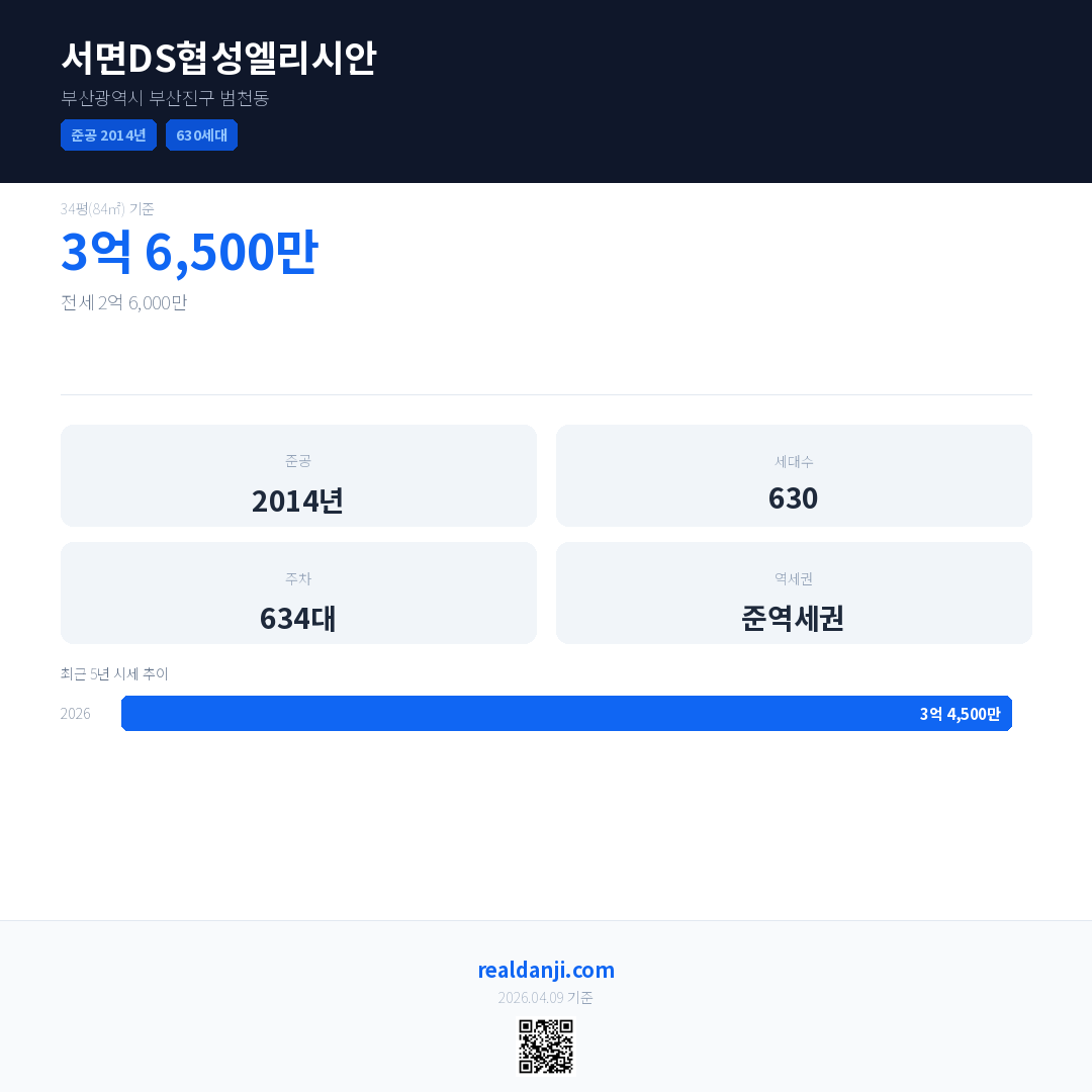 서면DS협성엘리시안 최근 거래가는 3억 6,500만입니다. (2026-04)