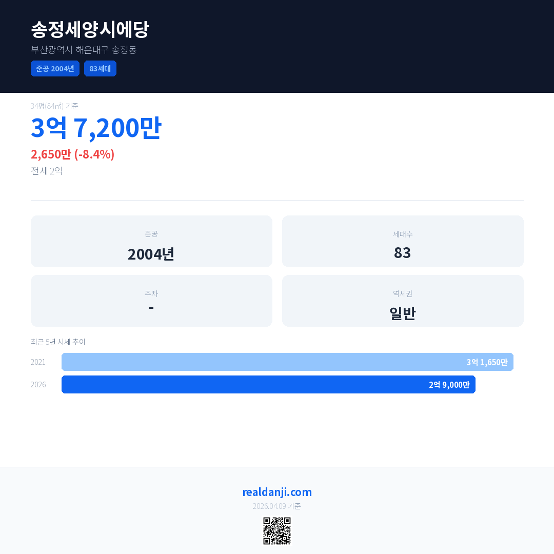 송정세양시에당 최근 거래가는 3억 7,200만입니다. (2026-03)
