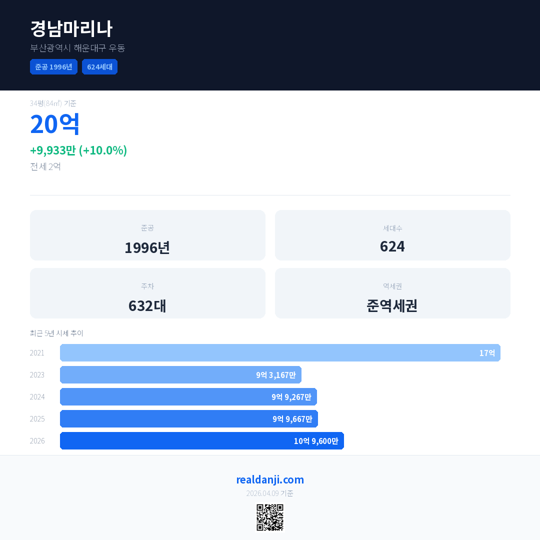 경남마리나 최근 거래가는 20억입니다. (2026-04)