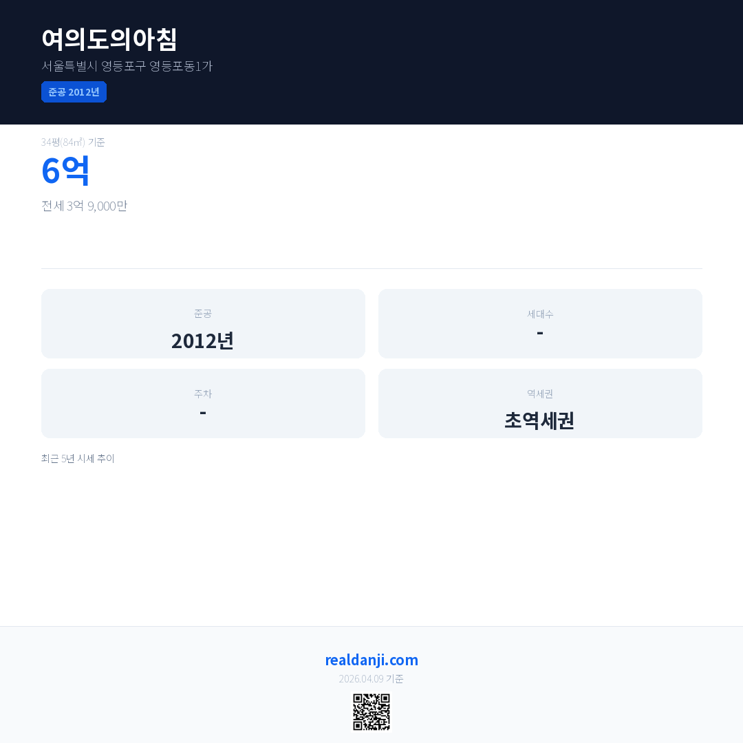 여의도의아침 최근 거래가는 6억입니다. (2026-03)