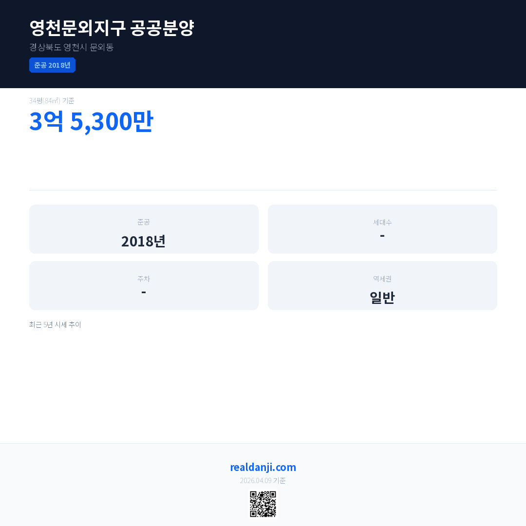 영천문외지구 공공분양 최근 거래가는 1억 7,330만입니다. (2020-03)