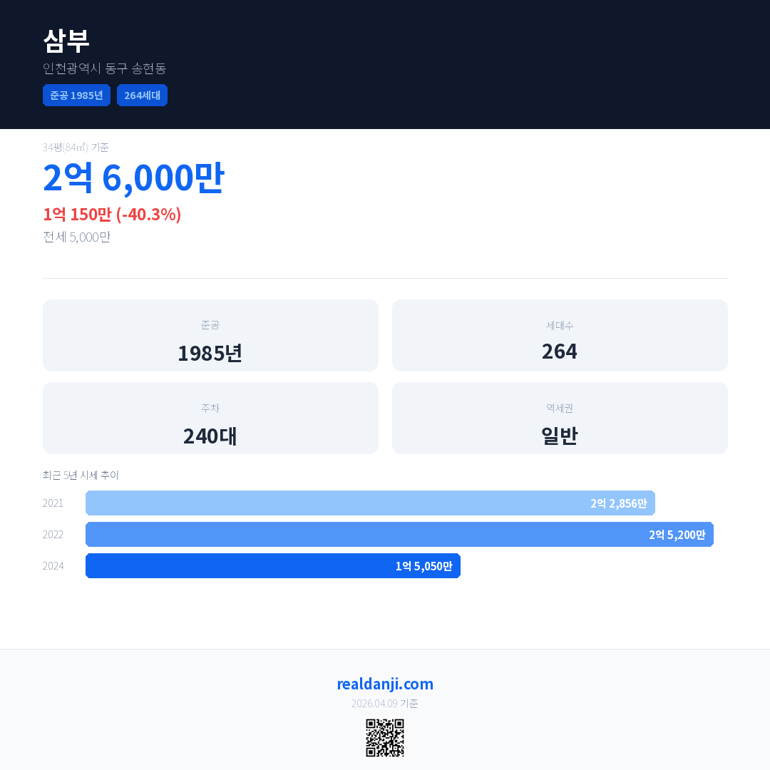 삼부 최근 거래가는 2억 6,000만입니다. (2025-10)