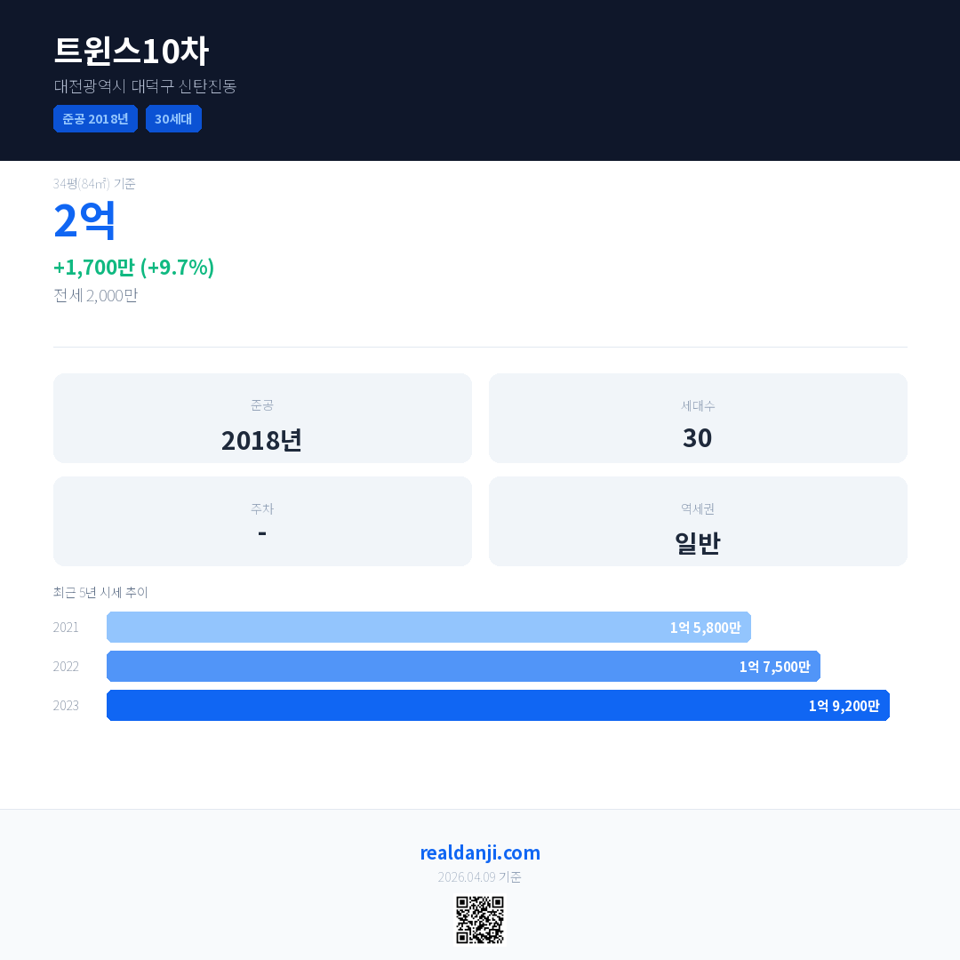 트윈스10차 최근 거래가는 2억입니다. (2025-12)