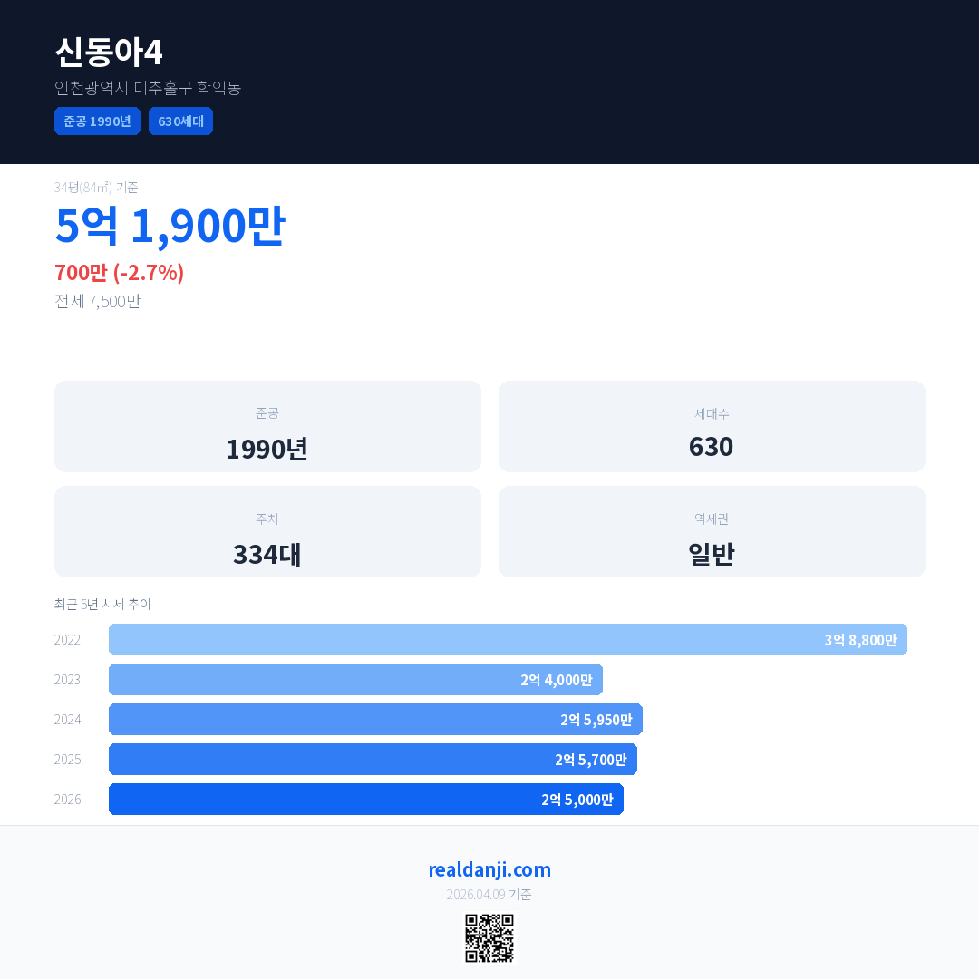 신동아4 최근 거래가는 5억 1,900만입니다. (2026-03)