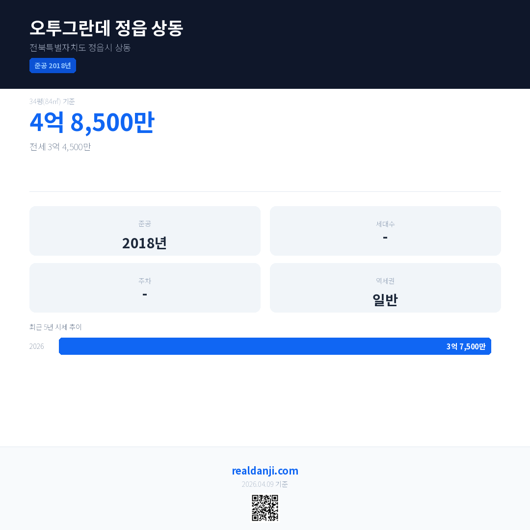 오투그란데 정읍 상동 최근 거래가는 4억 8,500만입니다. (2026-03)