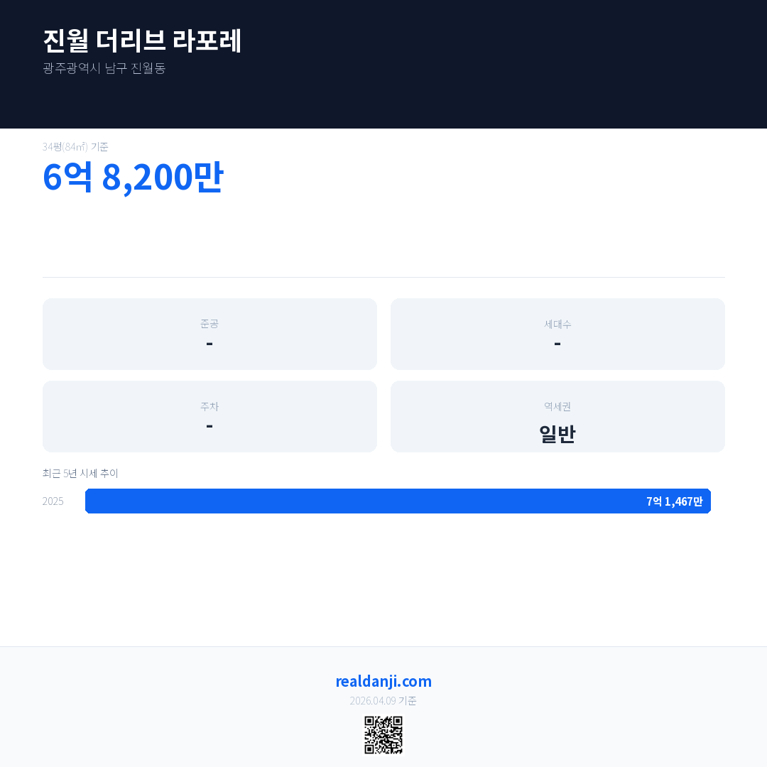 진월 더리브 라포레 최근 거래가는 7억 7,300만입니다. (2025-12)