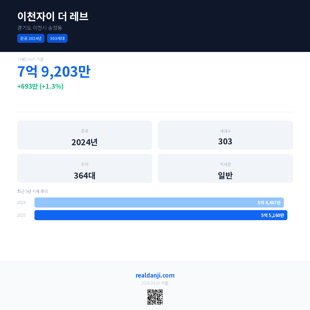 이천자이 더 레브 최근 거래가는 7억 9,203만입니다. (2025-10)
