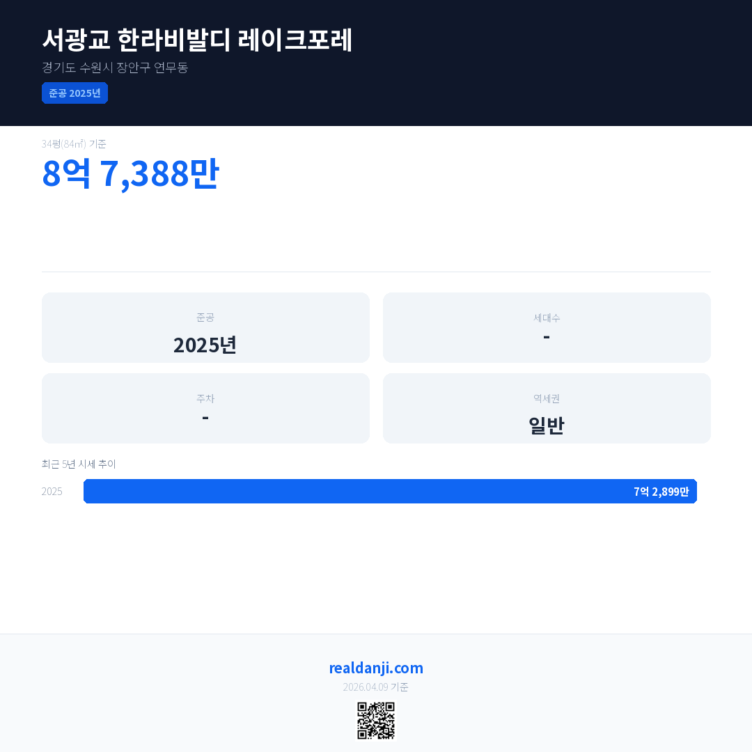 서광교 한라비발디 레이크포레 최근 거래가는 7억 3,630만입니다. (2025-06)
