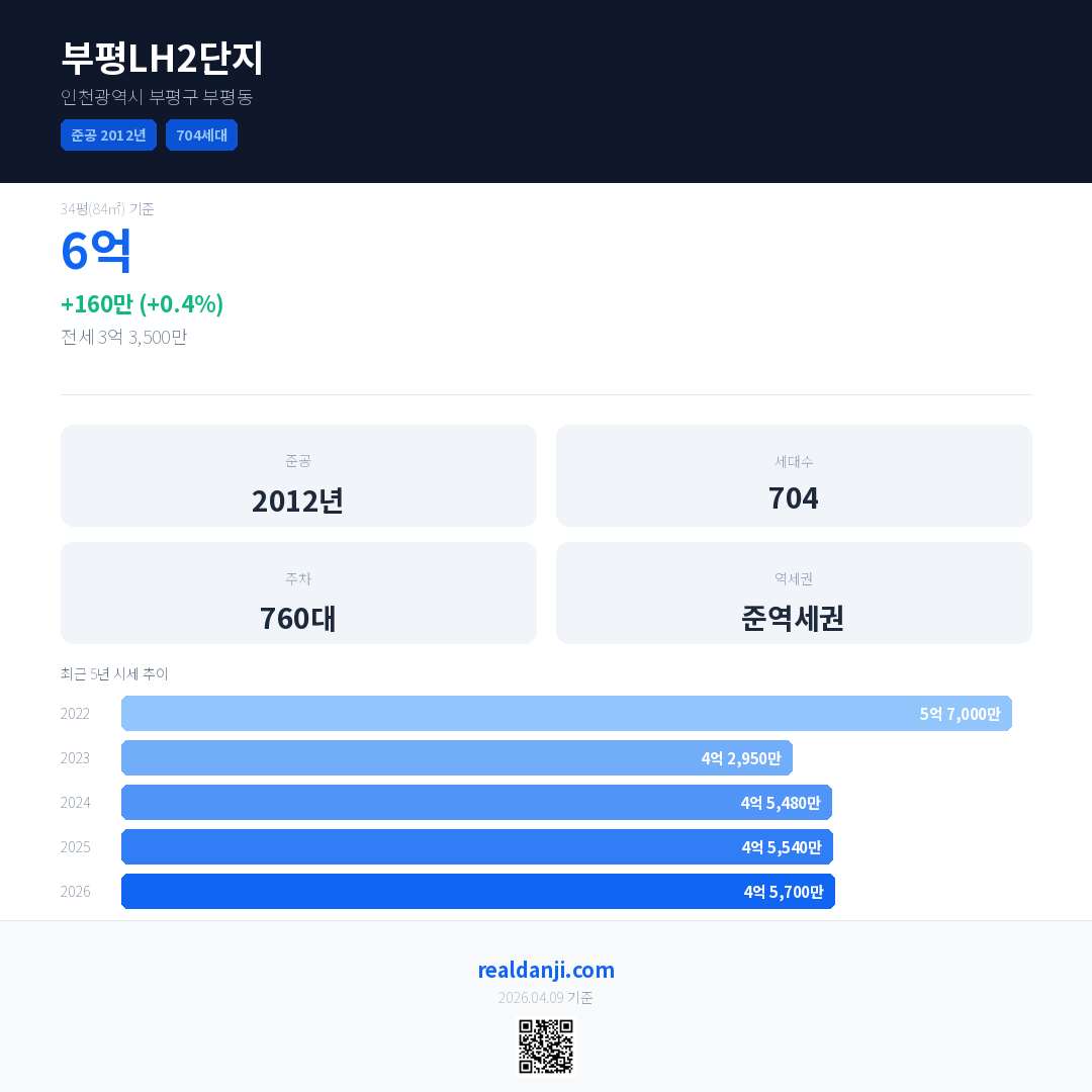 부평LH2단지 최근 거래가는 6억입니다. (2026-04)
