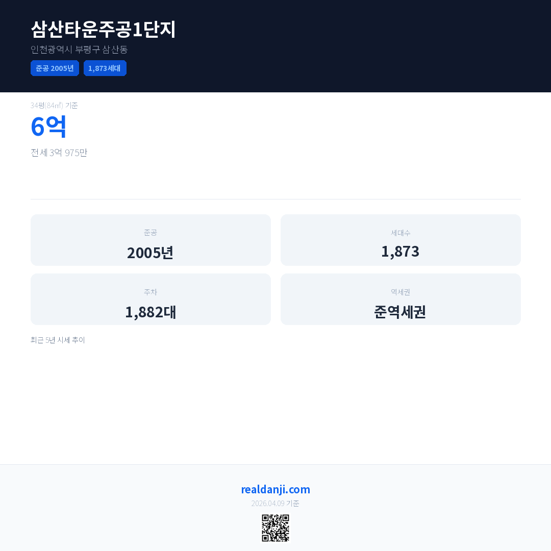 삼산타운주공1단지 최근 거래가는 6억입니다. (2026-04)