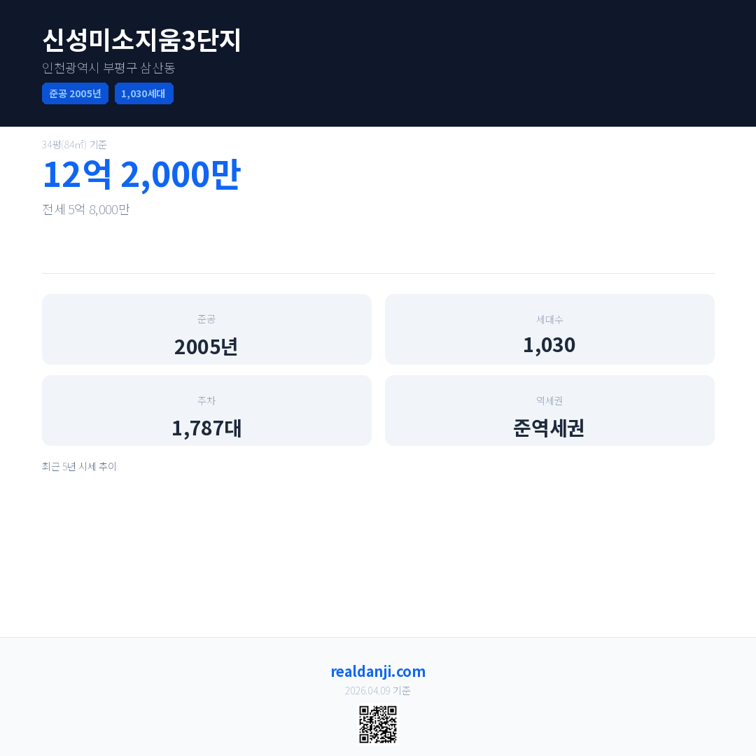 신성미소지움3단지 최근 거래가는 12억 2,000만입니다. (2026-03)