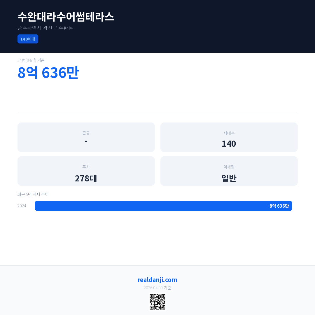 수완대라수어썸테라스 최근 거래가는 8억 636만입니다. (2024-03)