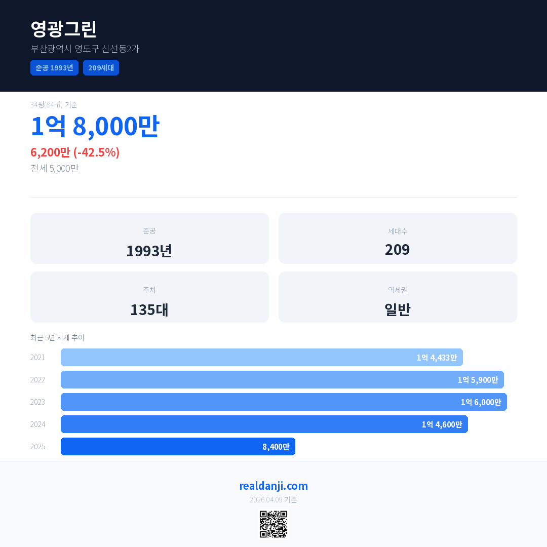 영광그린 최근 거래가는 1억 8,000만입니다. (2025-11)