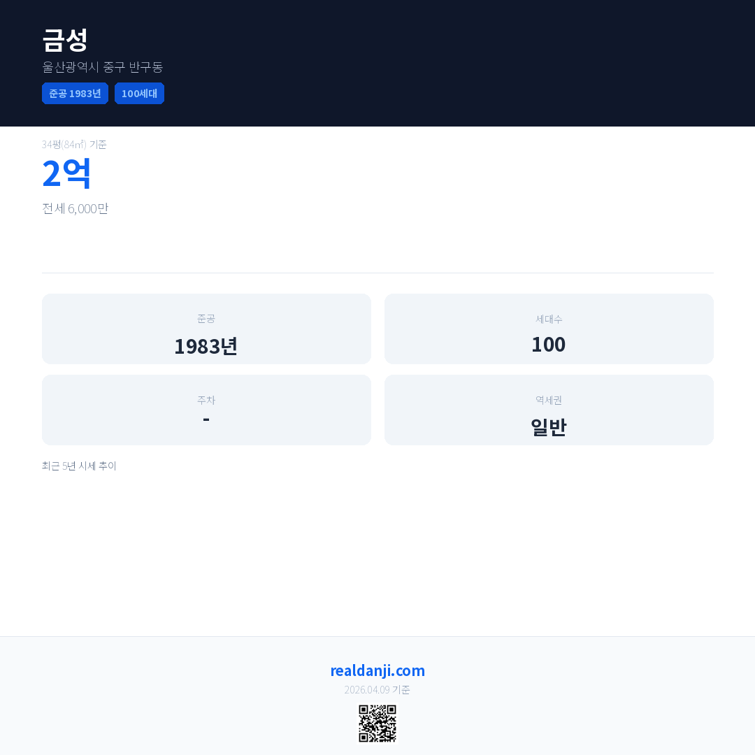 금성은(는) 1983년에 준공되었으며, 현재 43년차입니다. 총 100세대 규모입니다.