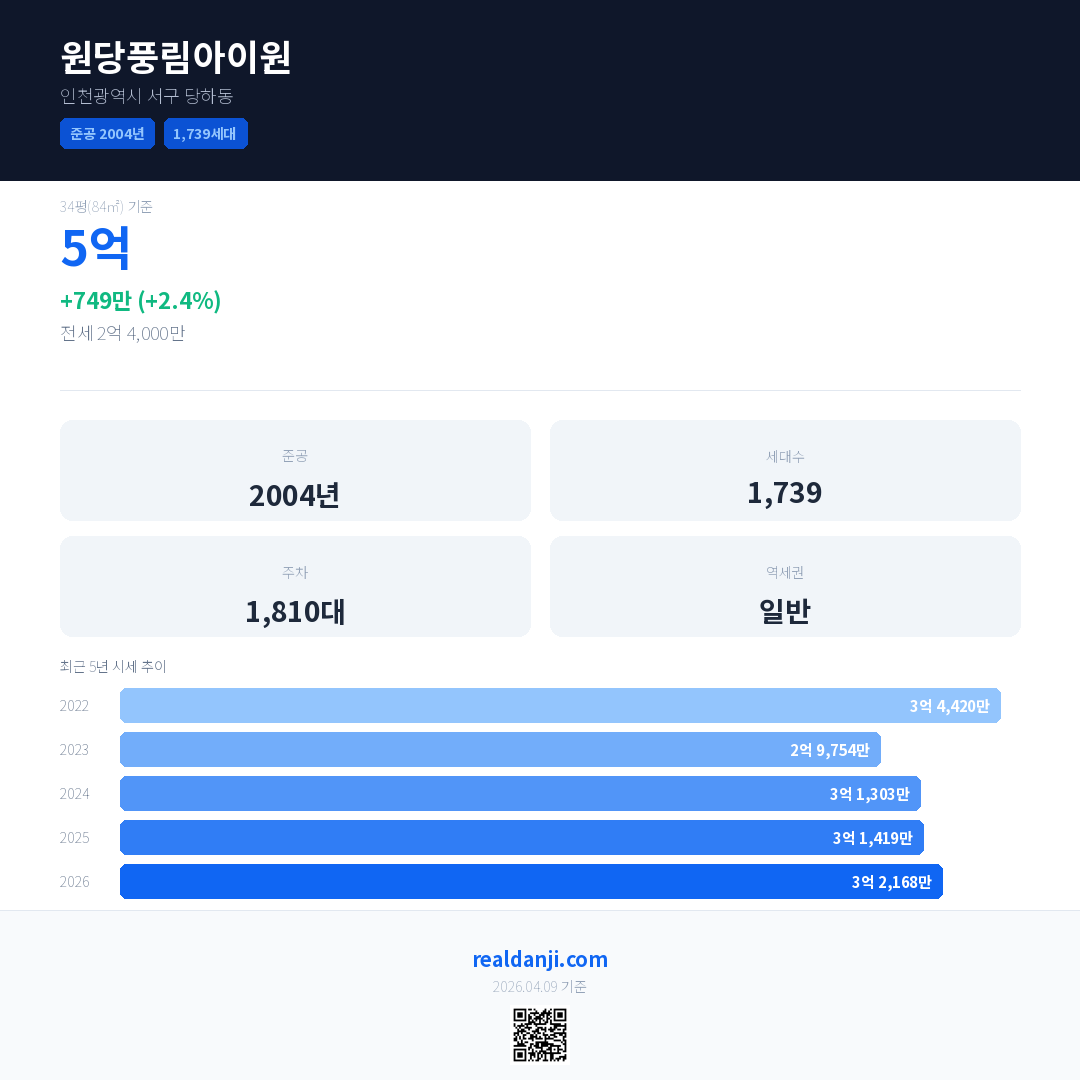 원당풍림아이원 최근 거래가는 5억입니다. (2026-04)