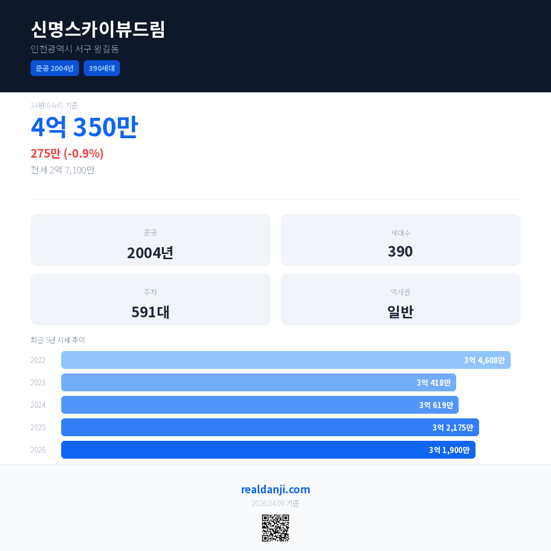 신명스카이뷰드림 최근 거래가는 4억 350만입니다. (2026-03)