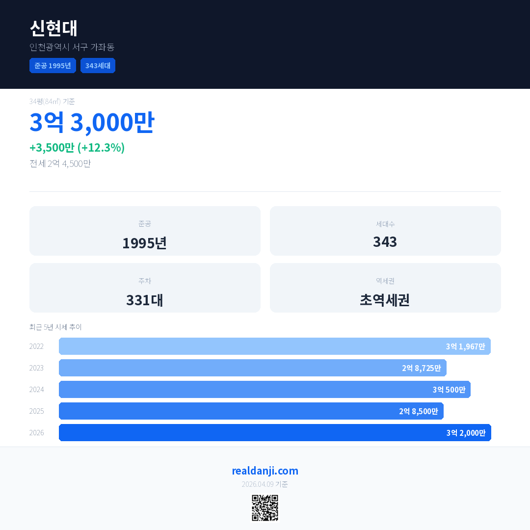 신현대 최근 거래가는 3억 3,000만입니다. (2026-01)