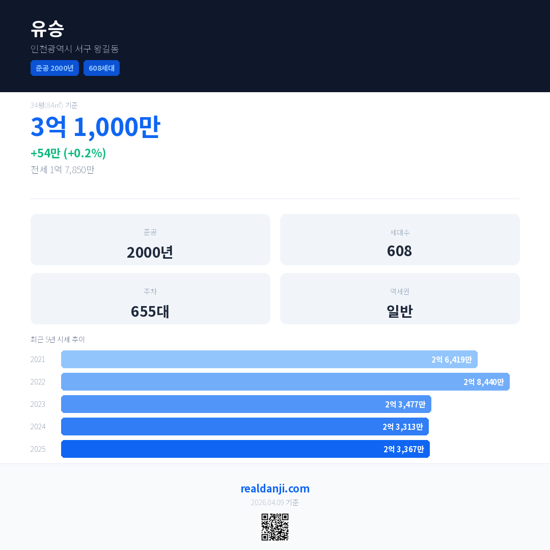 유승 최근 거래가는 3억 1,000만입니다. (2026-02)