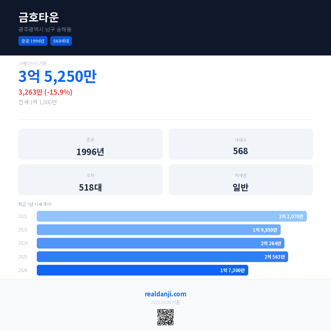 금호타운 최근 거래가는 3억 5,250만입니다. (2026-03)