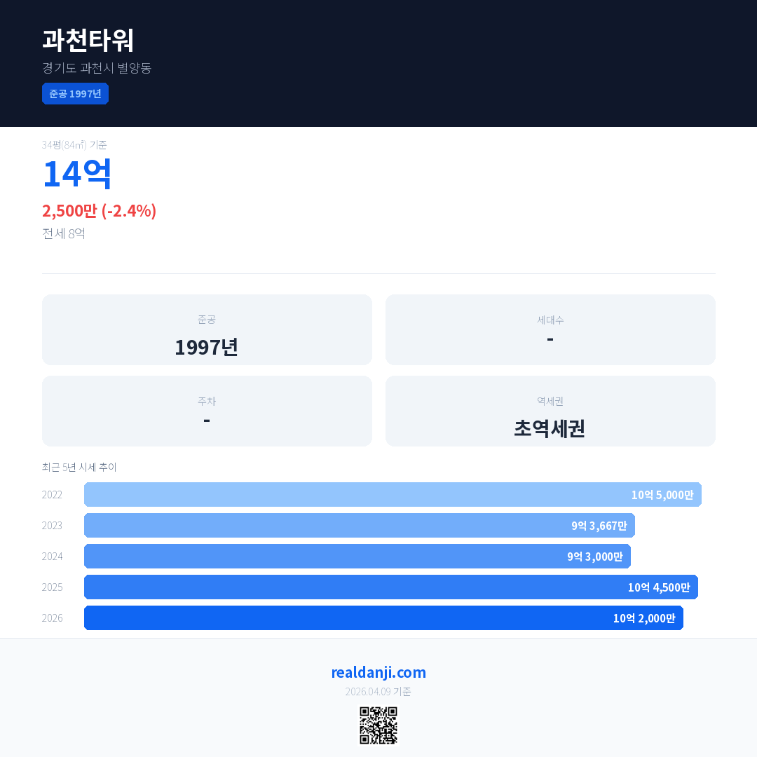 과천타워 최근 거래가는 14억입니다. (2026-03)