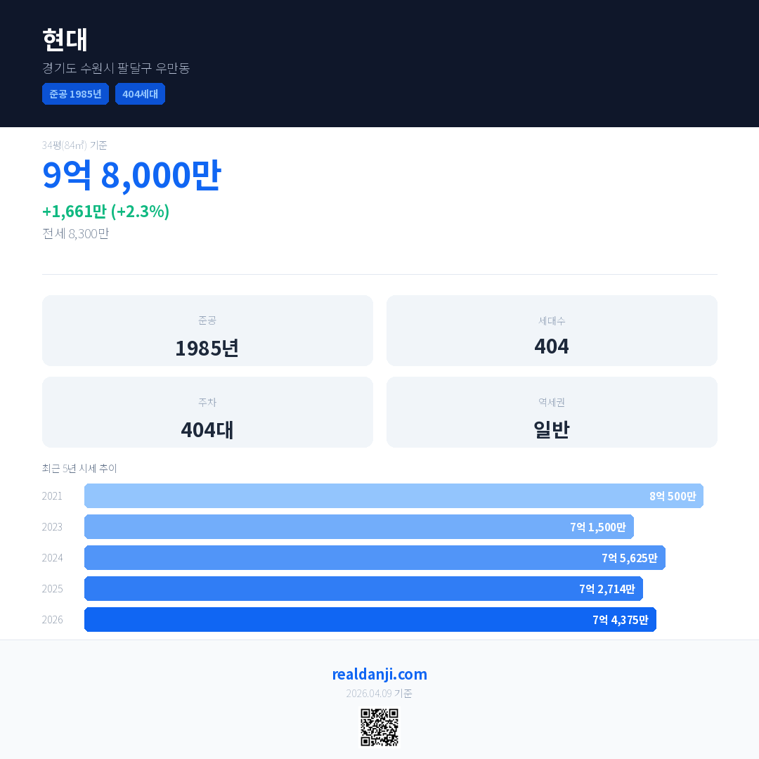 현대 최근 거래가는 9억 8,000만입니다. (2026-03)
