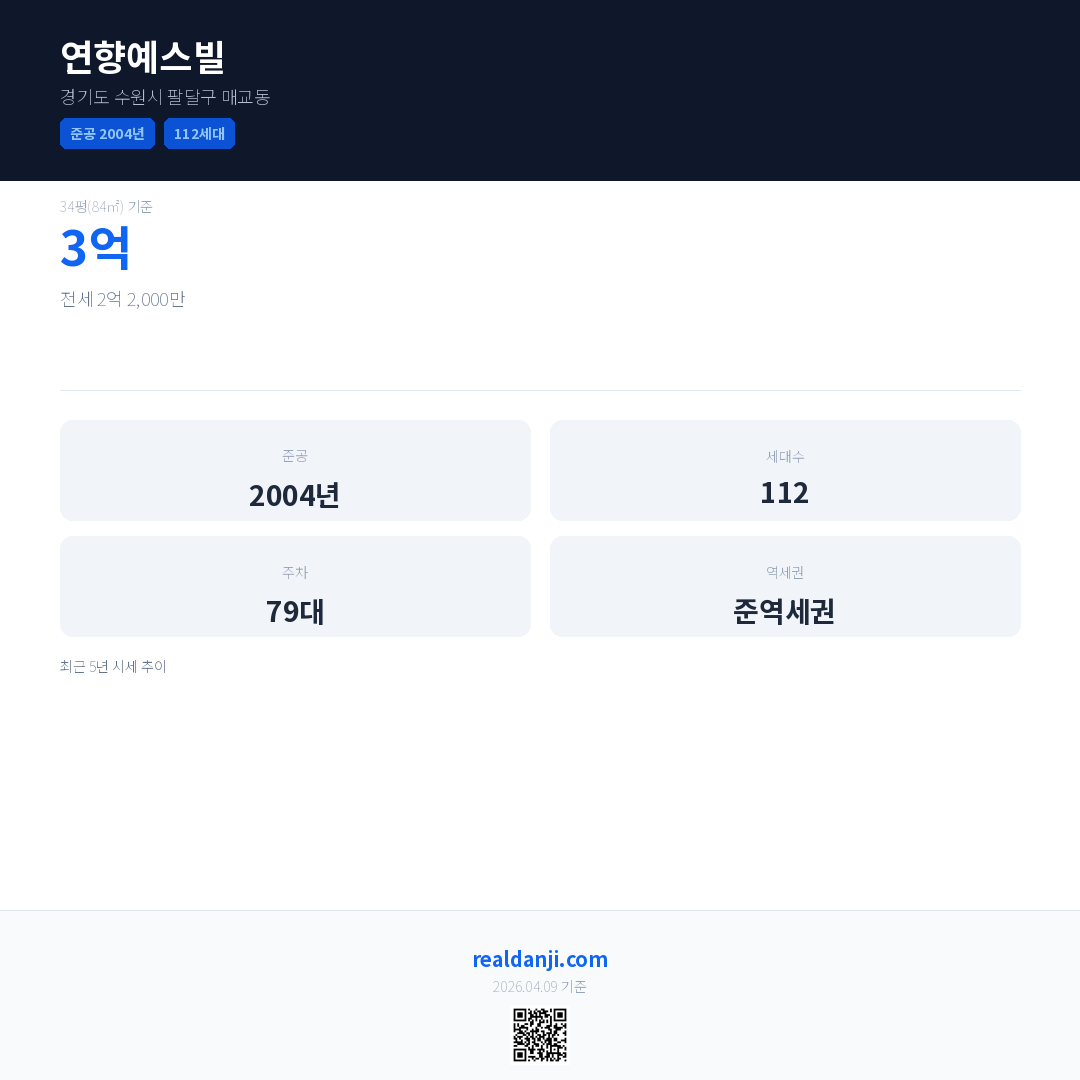 연향예스빌 최근 거래가는 3억입니다. (2026-01)