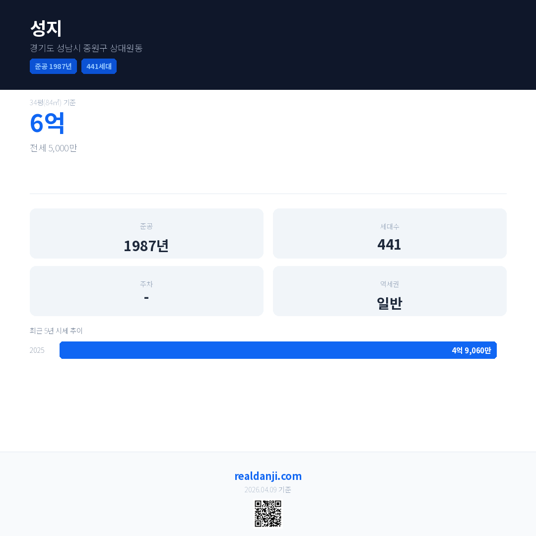 성지 국민평형 기준 2025년 평균 거래가는 4억 9,060만으로, 전년 대비 9.3% 상승 했습니다.