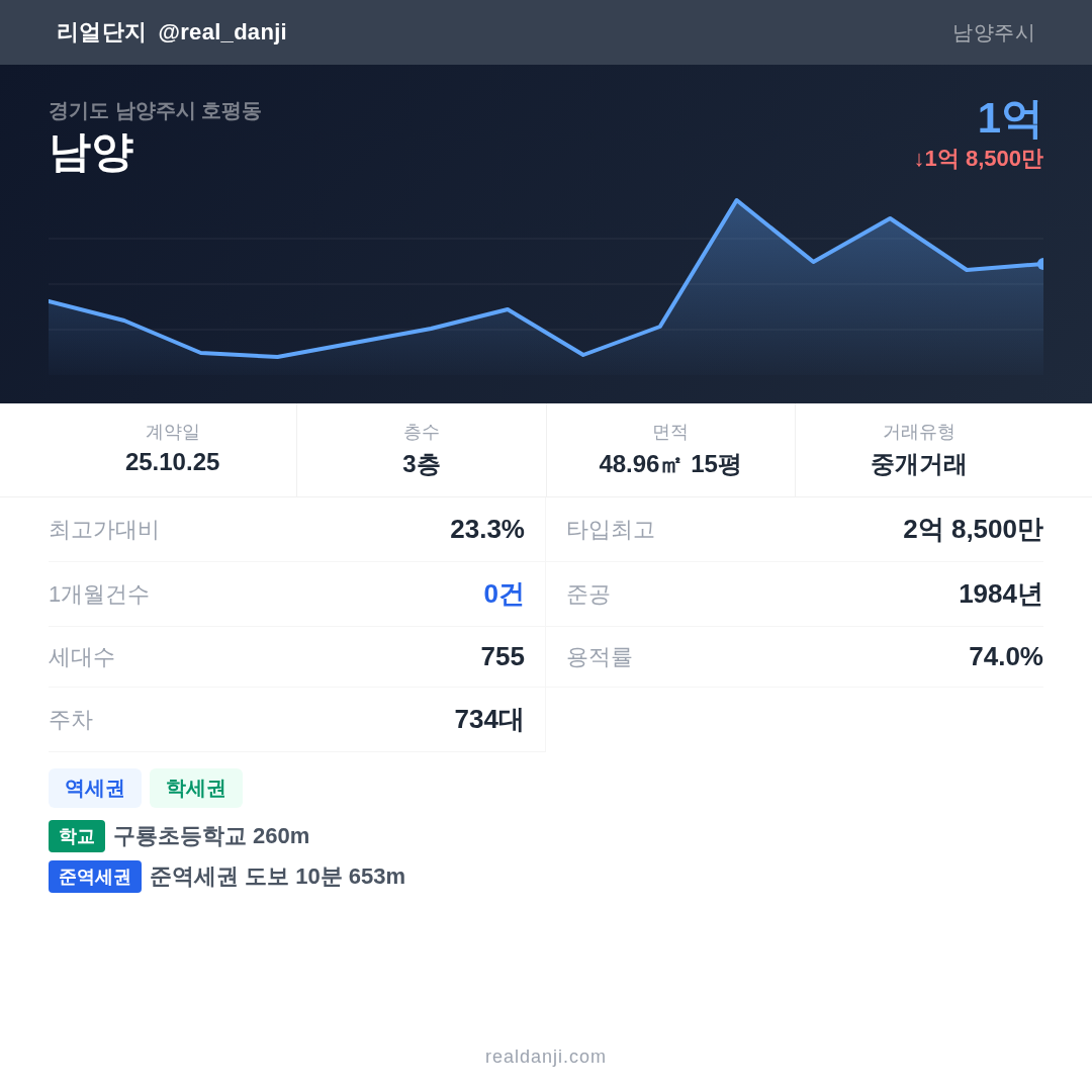 | 2025.10.25 | 49㎡ | 3층 | 1억 |