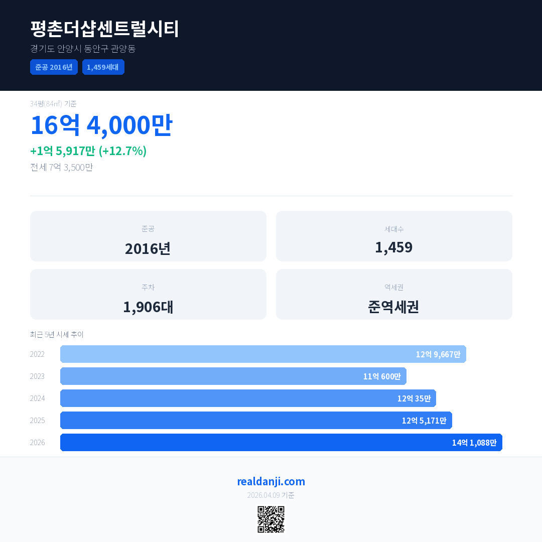 평촌더샵센트럴시티 최근 거래가는 12억 4,200만입니다. (2026-04)