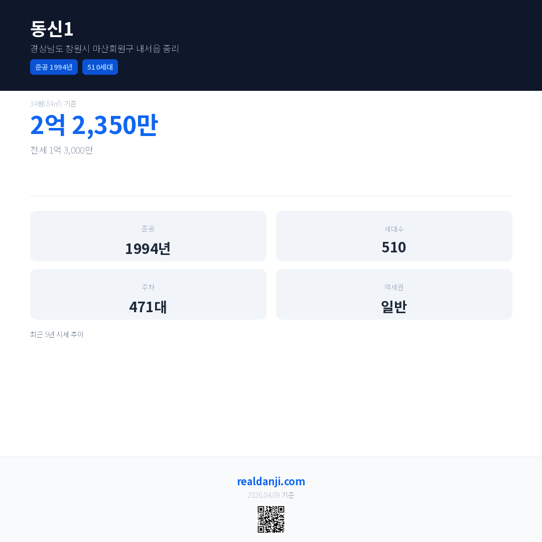 동신1 최근 거래가는 2억 2,350만입니다. (2026-01)