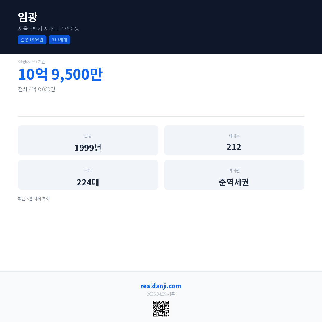 임광 최근 거래가는 10억 9,500만입니다. (2026-03)