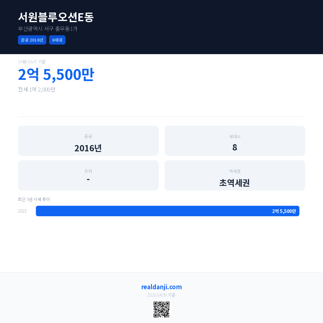 서원블루오션E동 최근 거래가는 2억 5,500만입니다. (2025-09)
