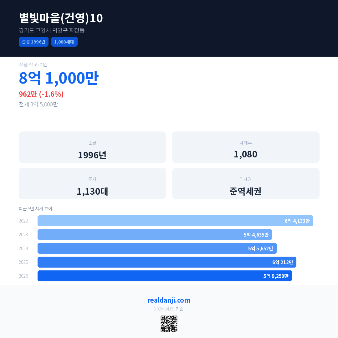 별빛마을(건영)10 최근 거래가는 8억 1,000만입니다. (2026-04)