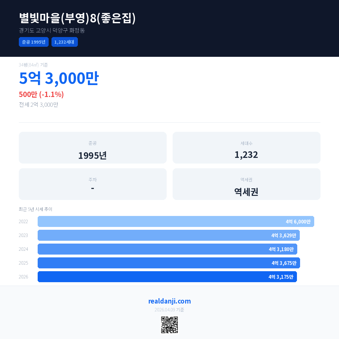 별빛마을(부영)8(좋은집) 최근 거래가는 5억 3,000만입니다. (2026-03)