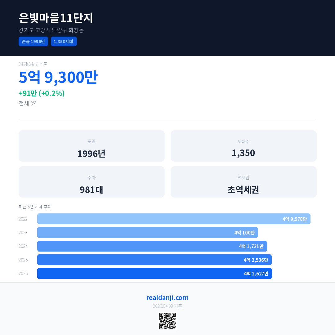 은빛마을11단지 최근 거래가는 5억 9,300만입니다. (2026-04)