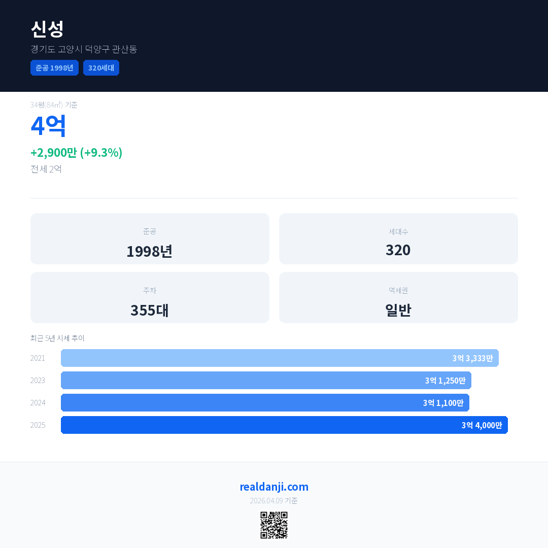 신성 최근 거래가는 4억입니다. (2026-02)