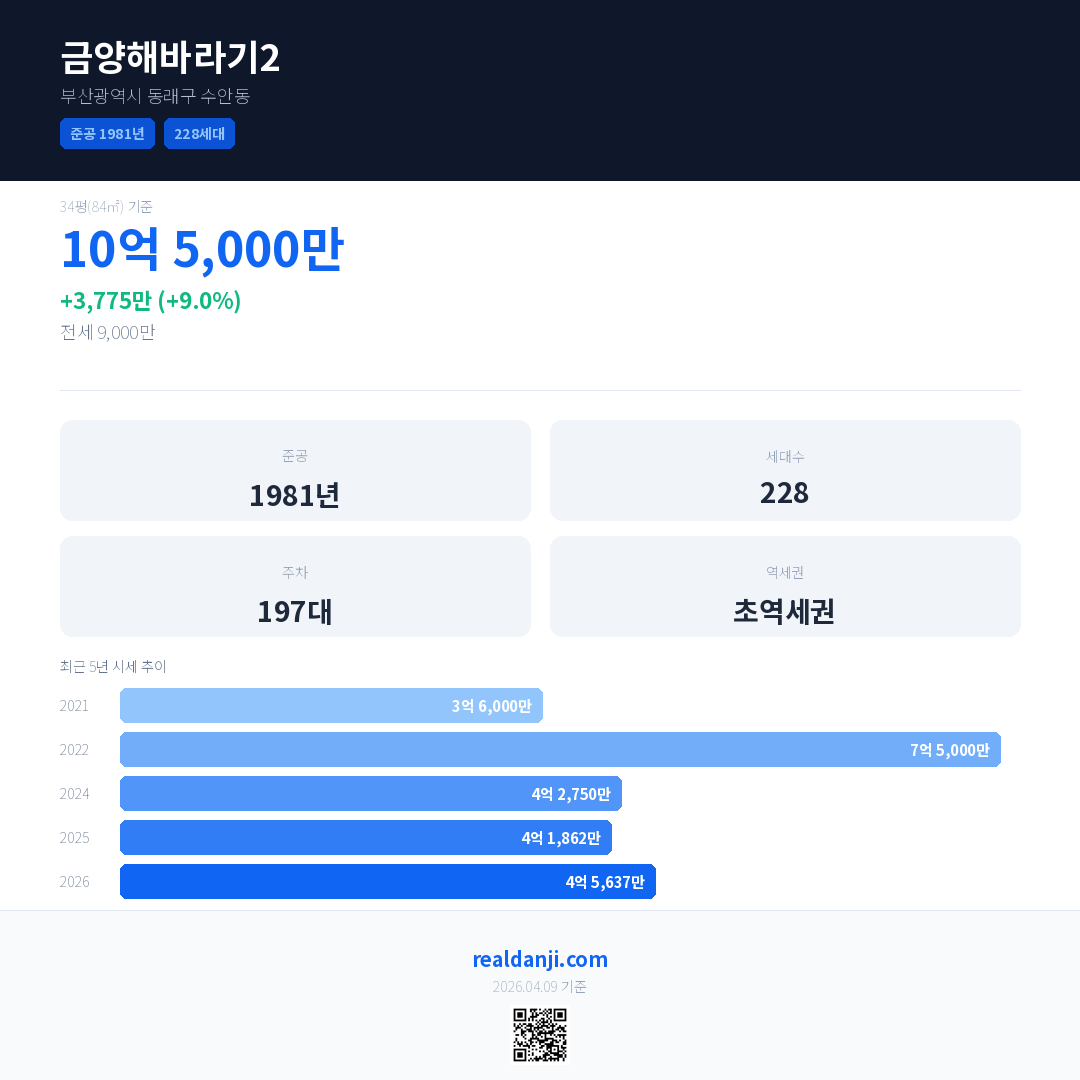 금양해바라기2 최근 거래가는 10억 5,000만입니다. (2026-03)